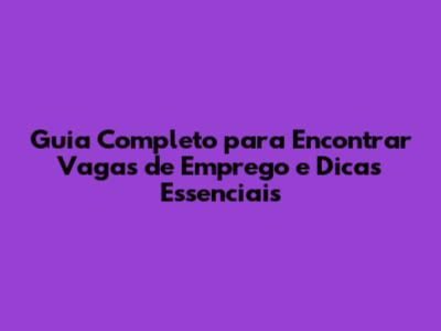 Guia Completo Para Encontrar Vagas De Emprego E Dicas Essenciais